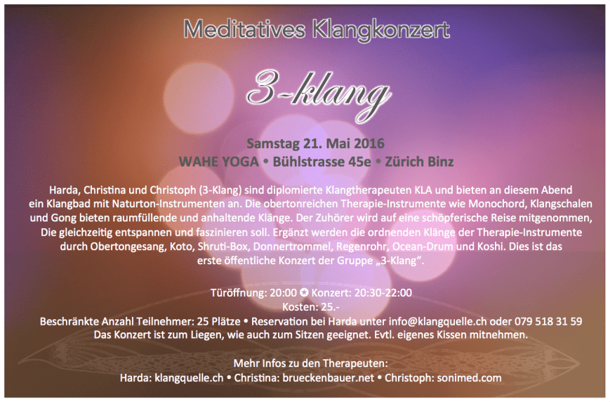 Vergangene Klang-Events Zufalls-Reihenfolge 🔔💫🤸🏽♀️ Teilen mit: Auf X teilen (Wird in neuem Fenster geöffnet) X Auf Facebook teilen (Wird in neuem Fenster geöffnet) Facebook Gefällt mir Wird geladen …